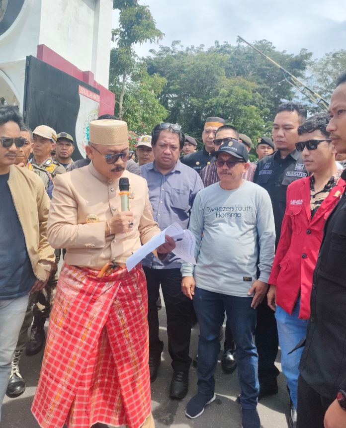 Mamuju, MandarPos.com – Gubernur Sulawesi Barat, Suhardi Duka (SDK), menemui massa aksi yang tergabung dalam Aliansi Solidaritas Perjuangan Mahasiswa Mamuju dalam rangka memperingati Hari Buruh Internasional (May Day) dan Hari Pendidikan Nasional, Jumat (2/5/2025), di depan Kantor Gubernur Sulawesi Barat, Jalan Abdul Malik Pattana Endeng, Mamuju.