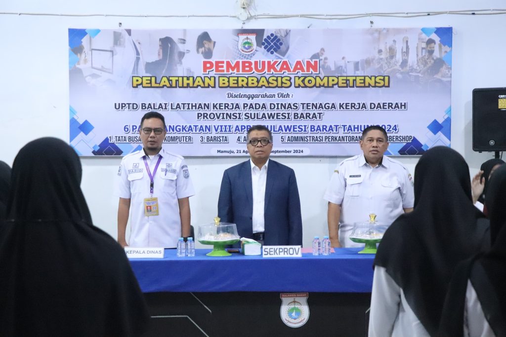 MAMUJU, MandarPos.com – Sekretaris Provinsi (Sekprov) Sulbar, Muhammad Idris membuka pelatihan berbasis kompetensi angkatan VIII 2024 yang diselenggarakan oleh UPTD Balai Latihan Kerja (BLK) Dinas Tenaga Kerja (Disnaker) Sulbar, Rabu, 21 Agustus 2024.