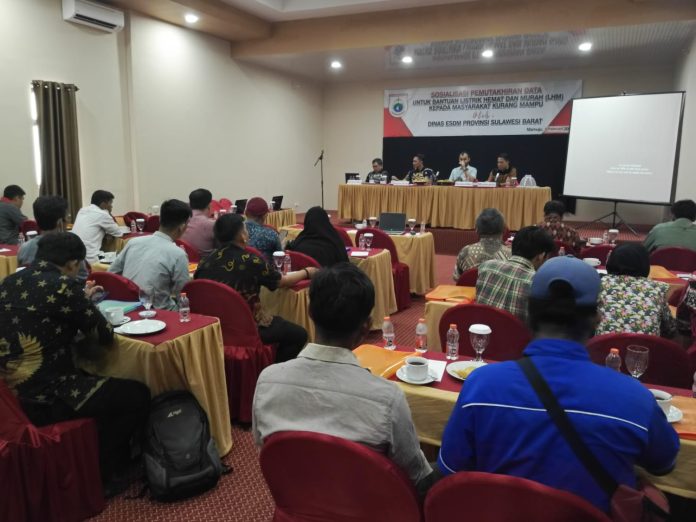 MAMUJU, MandarPos.com – Dinas Energi dan Sumber Daya Mineral (ESDM) Provinsi Sulawesi Barat (Sulbar) melaksanakan Sosialisasi tentang Program Bantuan Listrik Hemat dan Murah di Hotel Aflah Mamuju, Kamis 1 Februari 2024.