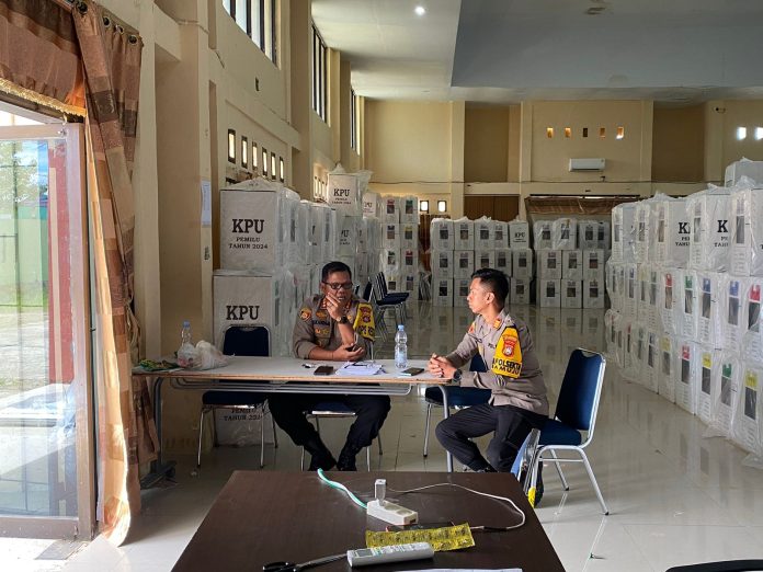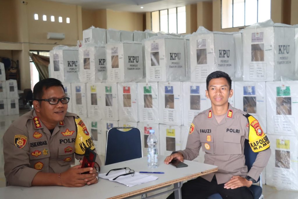 Mamuju, MandarPos.com – Kapolresta Mamuju Kombes Pol Iskandar didampingi Kapolsek Mamuju Akp Moch. Fauzi lakukan pengecekan dan pengamanan ketat proses pergeseran dan penerimaan logistik Pemilu di PPK kecamatan Mamuju dan Simboro. Jumat (16/2/24)