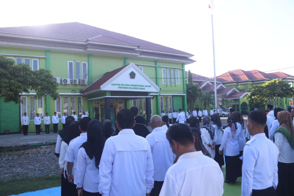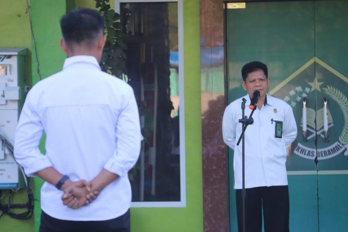 Mamuju, MandarPos.com – Kepala Bidang (Kabid) Penyelenggaraan Haji dan Umrah Kantor Wilayah Kementerian Agama (Kemenag) Provinsi Sulawesi Barat (Sulbar), Ahmad Barangbangy, menjadi pembina apel di halaman Kanwil Kemenag Sulbar, Selasa (20/2/2024).