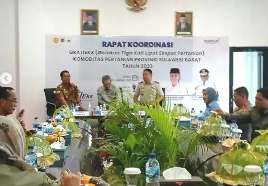 Dalam kunjungan ini turut hadir Pj. Gubernur Sulawesi Barat, Pimpinan Instansi Vertikal lingkup Pemprov Sulawesi Barat, Bupati Mamasa, Wakil Bupati Mamuju Tengah, sekaligus melakukan Rapat Koordinasi GRATIEKS (Gerakan Tiga Kali Lipat Ekspor Pertanian) Komoditas Pertanian Provinsi Sulawesi Barat Tahun 2023.