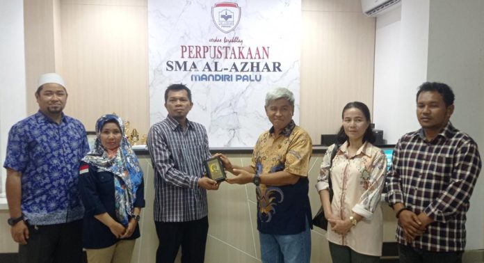 Usai berkeliling perpustakaan, Wakil Ketua Komisi IV DPRD Sulbar, Muhammad Hatta Kainang menyerahkan cenderamata atau plakat kepada Ketua Yayasan Al-Azhar Mandiri Palu.