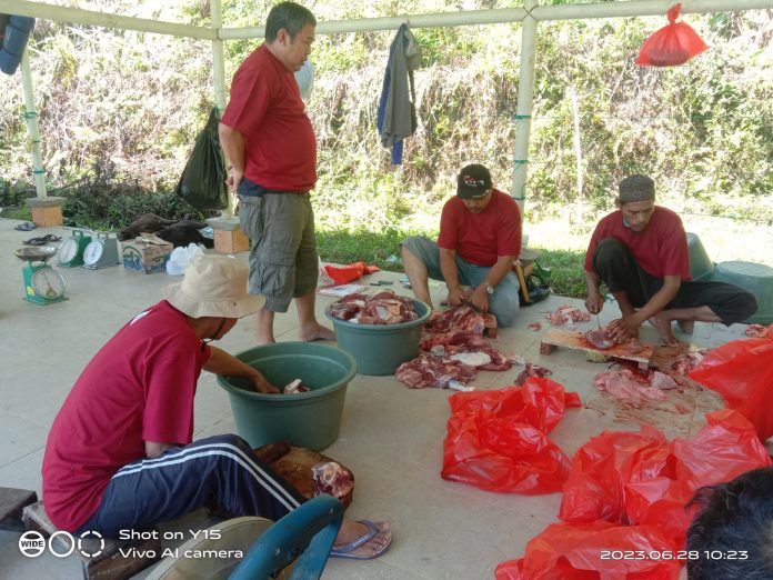 Dan hari ini itu akan kita potong sebanyak 9 ekor dan 8 ekornya lagi untuk besok dan sisanya itu hari ke tiga. Jelas Haerudin