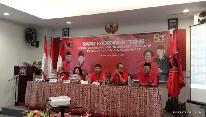 Usai melaksanakan Rapat Koordinasi Teknis penguatan bakal Caleg yang di hadiri sejumlah kader partai PDI yang berlangsung di Hotel d’Maleo, Jl. Yos Sudarso No.51, Kec. Mamuju, Kabupaten Mamuju (8/3/2023).