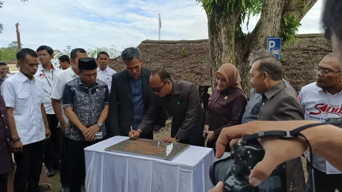 MAMUJU, MandarPos.com — Pj Gubernur Sulbar bersama Ketua DPRD Sulbar Suraidah Suhardi melakukan penandatanganan prasasti peresmian Masjid DPRD Sulbar, Rabu 14 Juni 2023.