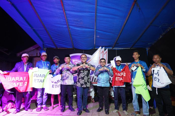 Penyerahan hadiah kepada juara Etape II rute Pantai Pamboang – Banua Sendana. Sebanyak enam perahu dari dua grup menerima total hadiah Rp6,4 juta, ditambah bendera juara sebagai simbol prestasi.